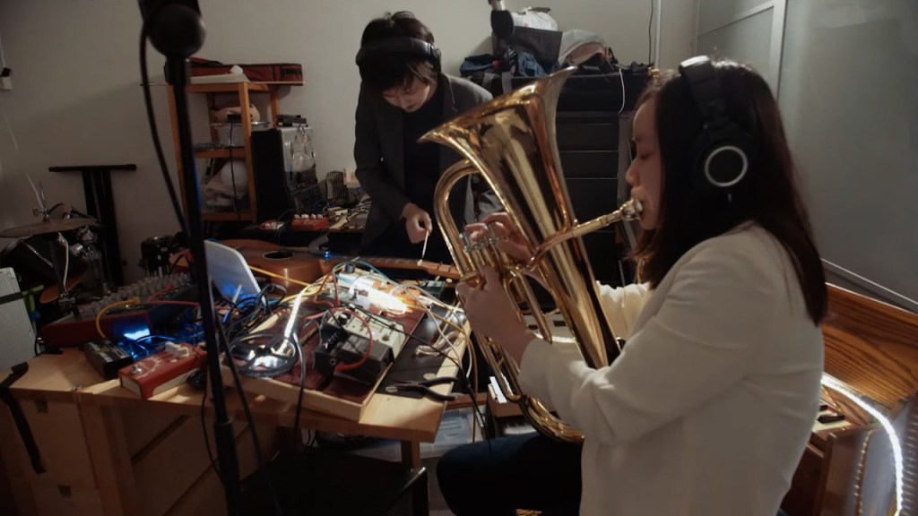 Working on this live score for Dragnet Girl, we wanted to embrace fully the opportunity to sit with the film, thinking on its historical context while playing alongside its gestures and expressions. Taking a minimal, textural approach to the music, we wanted to create a live experience that could bring a modern consideration to witnessing this new restoration. In the composition, we hoped to highlight and play between the hopes, tensions, energies and frailties of the characters in this fast world with deep longings. We were also inspired by the historical context and legacy of the film and for us, it created a space for unique instrument pairings for this interpretation, between reed organ, prepared guitar, taishōgoto, harmonica, percussions, vocals and keyboard.