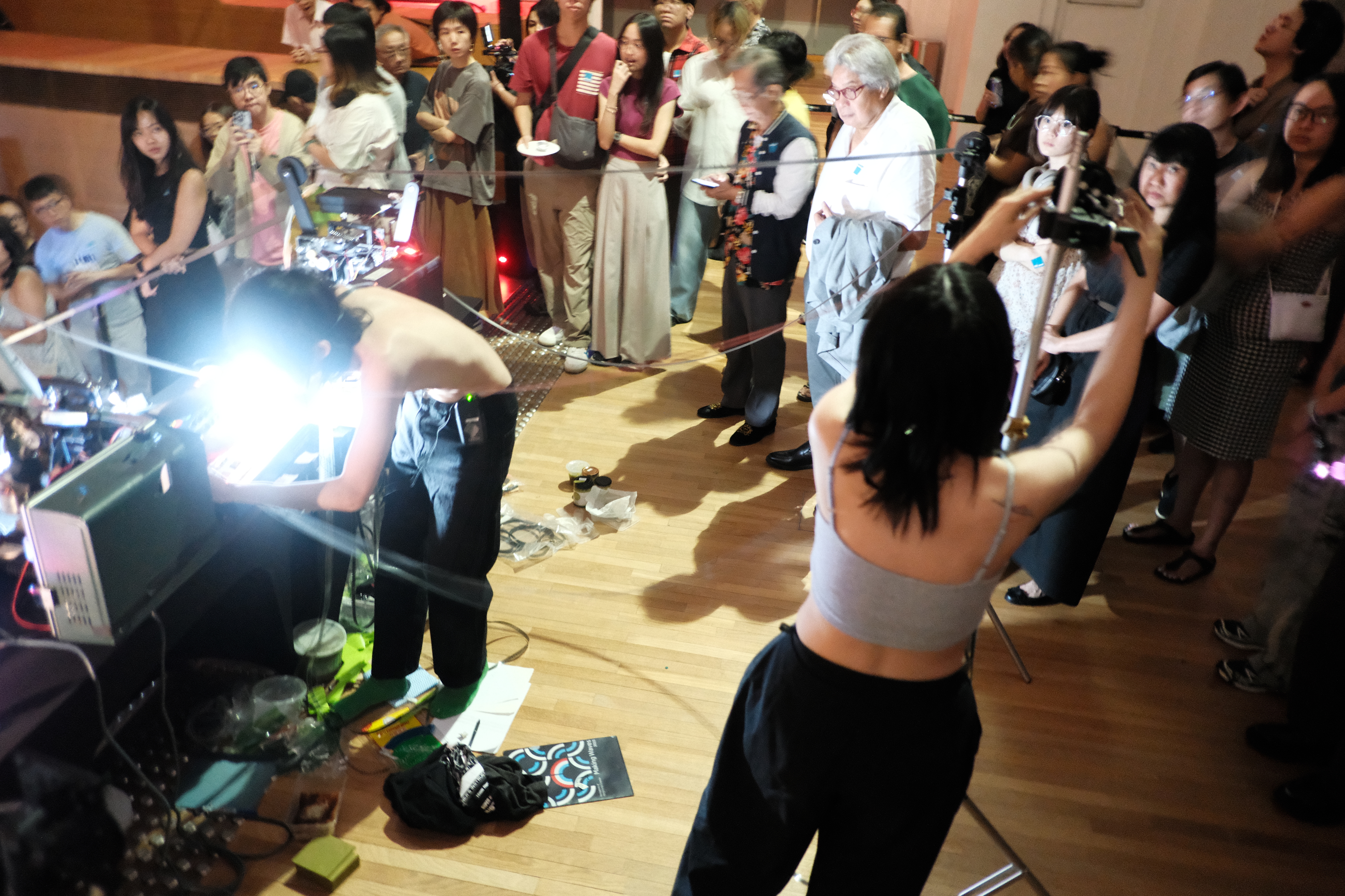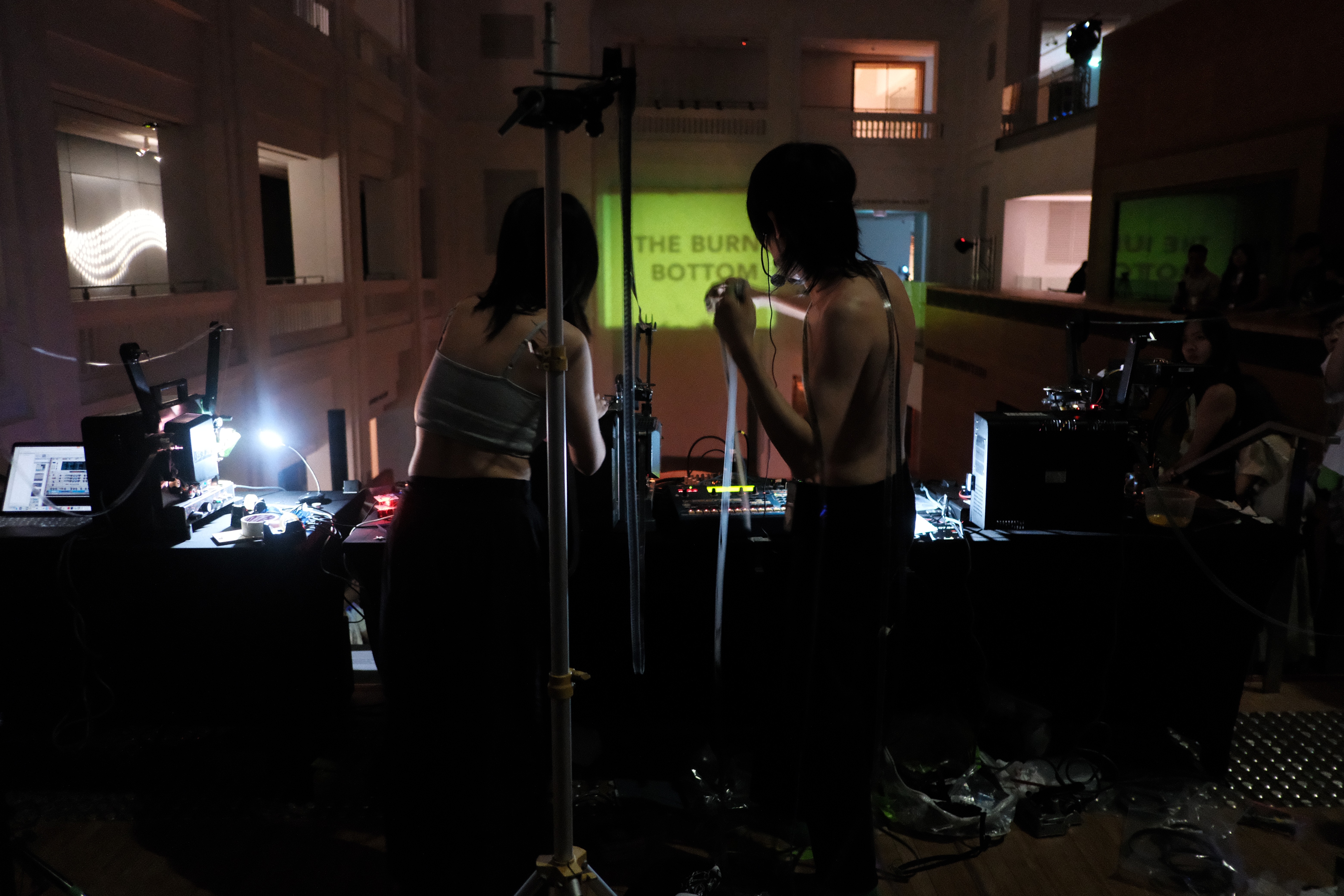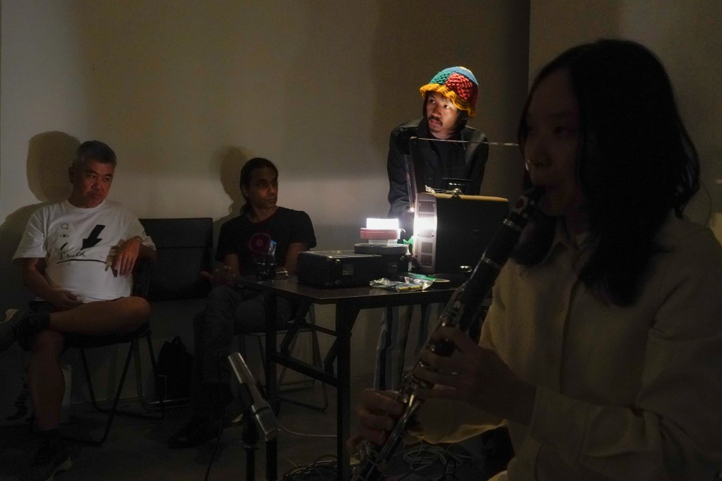A sound art performance presented at the ArtScience Museum as part of a collaboration with filmmaker Daisuke Miyazaki. The 1.5-hour performance involved the use of analogue tape loops, found objects including rocks and a bicycle, a vintage reed organ, a self-built string instrument as well as guitars and percussions, exploring the intersections of sound, image and event, and the possibilities of resistance in such a staging.