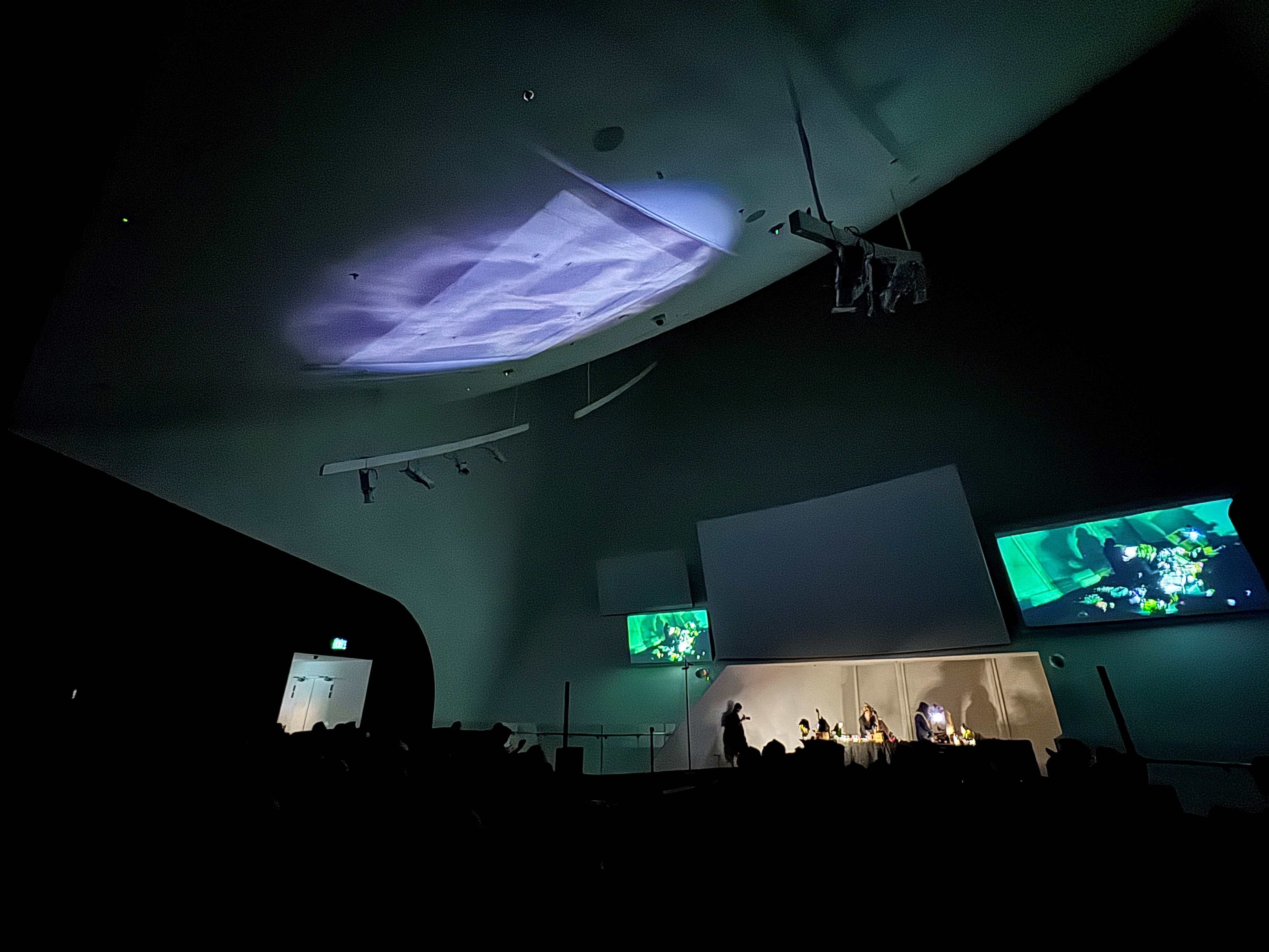 An expanded cinema, audio-visual performance, presented as a companion piece to our sound installation, A Lotus Turns To Light, at the ArtScience Museum Oculus.