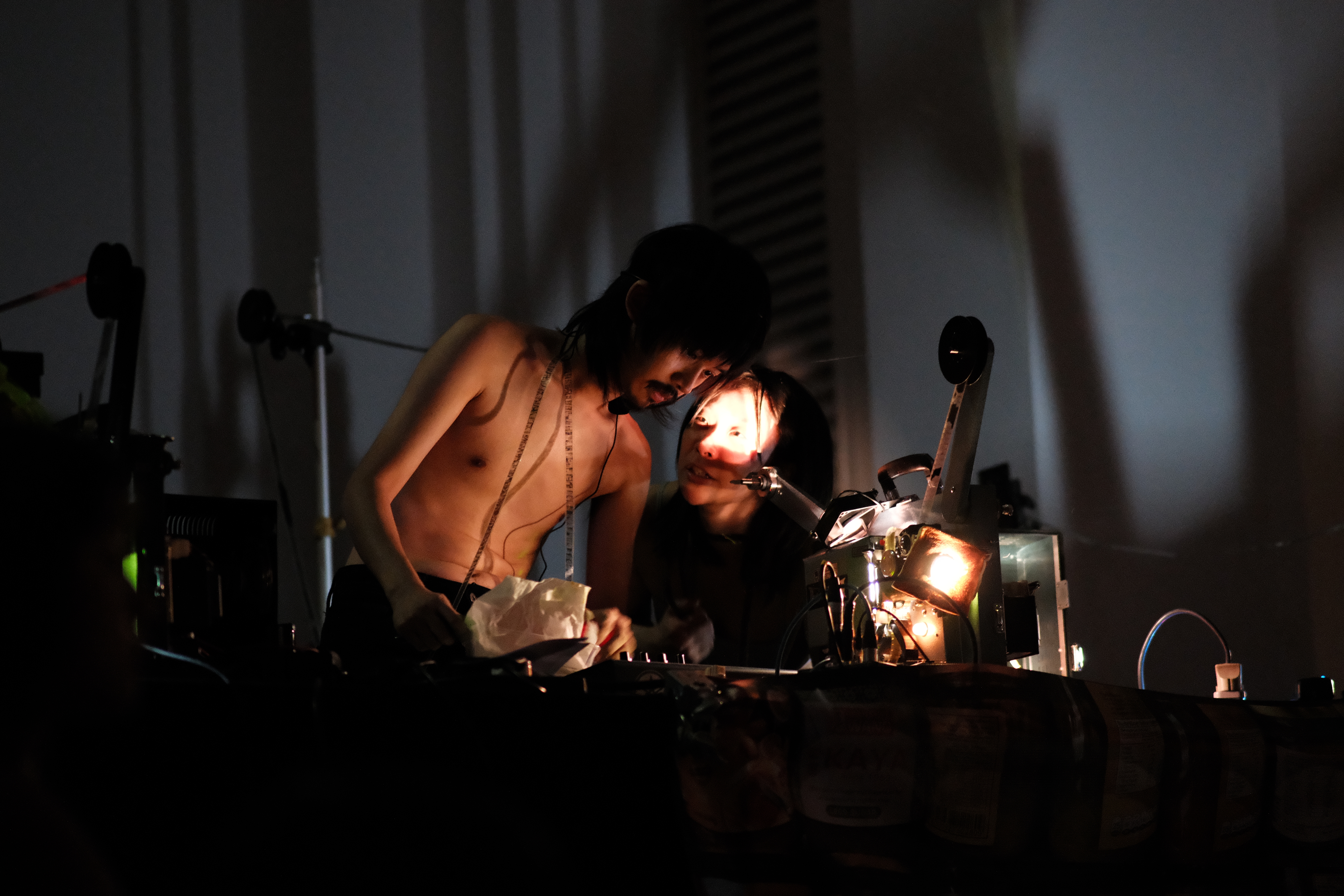 The performance is a reflection on the cycles of the lotus, light and time. In the composition of A Lotus Turns To Light, the sounds of three film loops played on a 16mm film projector were used as the basis of the three main motifs. In this performance, the three film loops are performed and recontextualized live with modified 16mm film projectors and lenticular interventions, alongside a minimalist and textural soundscape. A moment where sound is seen and image is heard in the echoes of each other, finding expression in the improvisational, ethereal and tactile.
