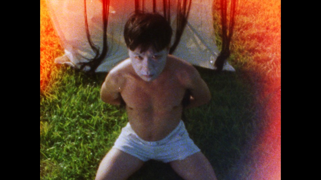 A man with hair growing wildly over his body is taken by a mania of ecstasy and anguish. He struggles with the hair becoming a means of discipline and punishment against himself, while being overwhelmed by the explosive jubilance of its sprouting. In this bizarre vision, overlaid 16mm and Super 8 film loop projections created with the filmmakers’ own hair, clash in existential rage against discipline and the body in Singapore.